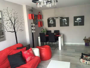 Con 99 m² de espacio elegantemente diseñado en la tercera planta con acceso cómodo mediante ascensor y orientación este para disfrutar del sol matutino, esta luminosa y funcional residencia es perfecta como hogar principal o segunda vivienda. La distribución incluye dos dormitorios amplios con armarios empotrados y baños en suite, un generoso salón-comedor que fluye hacia una terraza privada con vistas abiertas a jardines tropicales y zonas verdes, y una cocina totalmente equipada con electrodomésticos de alta gama. Los acabados premium destacan por suelos de mármol, carpintería a medida, climatización central con calefacción individual y sistemas eficientes que otorgan un certificado energético A tanto en consumo como en emisiones —garantizando bajos costes operativos y sostenibilidad—. Incluidos en el precio, una plaza de garaje dedicada y trastero añaden comodidad diaria.