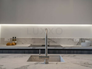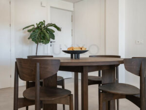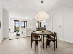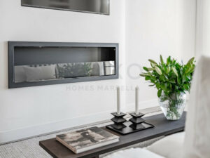 El apartamento ha sido reformado con gran atención al detalle, optimizando el espacio y la entrada de luz natural. El resultado es un salón amplio y muy luminoso, con una distribución moderna y abierta. La sala de estar cuenta con una gran pantalla de televisión y una acogedora chimenea, creando un ambiente perfecto para relajarse y disfrutar.