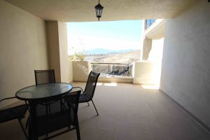 La propriété est en excellent état. Elle comprend un grand séjour, une cuisine moderne, deux chambres spacieuses et deux salles de bain. À l'extérieur, une spacieuse terrasse de 30 m² offre une vue panoramique sur le golf, la mer et les montagnes.