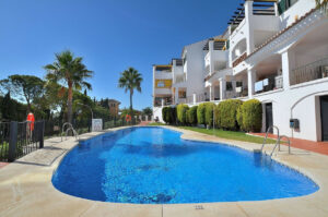El complejo dispone de piscina comunitaria y jardín.