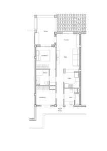 Hall de entrada, dormitorio 2, cuarto de baño. A continuación, pasillo, cocina, salón-comedor con acceso a terraza y por último, de vuelta al salón, acceso a dormitorio principal con baño en suite. Acceso a la terraza también desde este dormitorio.