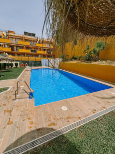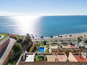 La urbanización es otro de sus grandes atractivos: cuenta con dos piscinas, pista de pádel y jardines con vistas al mar, ideales para disfrutar del tiempo libre sin salir de casa.