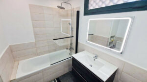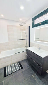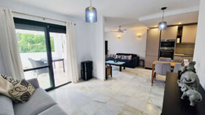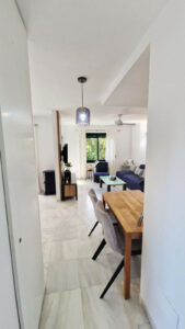 ¡Ubicación fantástica! Junto al Parque Paloma, fantástico apartamento, recientemente reformado con mucho gusto. Originalmente era un apartamento de dos dormitorios, que se ha convertido en uno de uno. Sería muy fácil restaurarlo con una puerta corredera o doble. Se encuentra en un encantador y cuidado complejo de estilo andaluz, con dos piscinas y jardines bien cuidados. A 7 minutos a pie del centro de Arroyo de la Miel y de la estación de tren, así como de las playas de Benalmádena, el paseo marítimo, los chiringuitos, etc. Tiendas, transporte público y todos los servicios están muy cerca. La propiedad consta de un recibidor con trastero, un baño completo con ventana y un amplio dormitorio con armarios empotrados. Preciosa cocina americana, amplio salón con acceso a una gran terraza de 15 m² con orientación oeste. Entorno muy tranquilo, pero cerca de todo. Aeropuerto de Málaga a 15 minutos en coche.