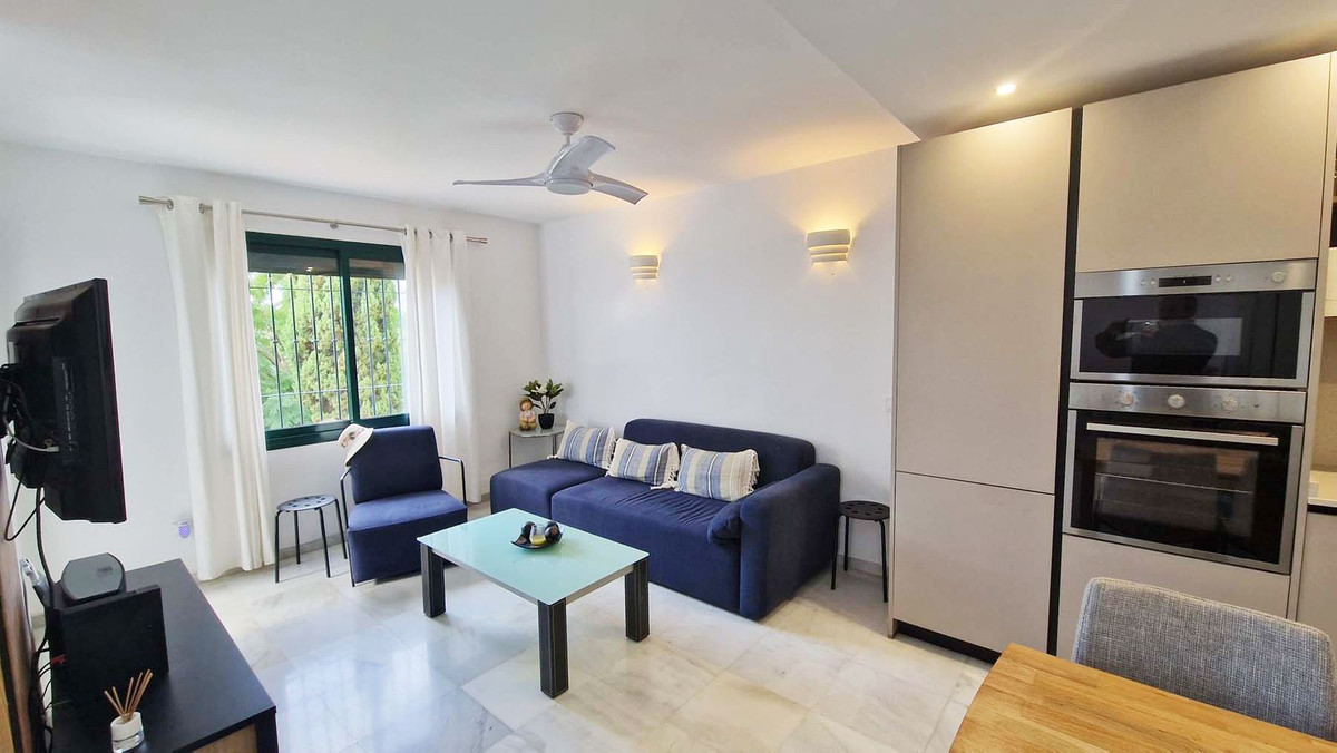 ¡Ubicación fantástica! Junto al Parque Paloma, fantástico apartamento, recientemente reformado con mucho gusto. Originalmente era un apartamento de dos dormitorios, que se ha convertido en uno de uno. Sería muy fácil restaurarlo con una puerta corredera o doble. Se encuentra en un encantador y cuidado complejo de estilo andaluz, con dos piscinas y jardines bien cuidados. A 7 minutos a pie del centro de Arroyo de la Miel y de la estación de tren, así como de las playas de Benalmádena, el paseo marítimo, los chiringuitos, etc. Tiendas, transporte público y todos los servicios están muy cerca. La propiedad consta de un recibidor con trastero, un baño completo con ventana y un amplio dormitorio con armarios empotrados. Preciosa cocina americana, amplio salón con acceso a una gran terraza de 15 m² con orientación oeste. Entorno muy tranquilo, pero cerca de todo. Aeropuerto de Málaga a 15 minutos en coche.