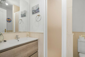 Con plaza de aparcamiento subterráneo privado incluida, la comodidad está a su alcance. Aproveche el acceso directo a la playa, lo que le permitirá disfrutar de interminables días de sol junto al mar. Los hermosos jardines comunitarios son perfectos para pasear tranquilamente, mientras que dos atractivas piscinas y un bar en la piscina ofrecen un refrescante escape en los días cálidos.