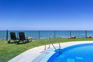 Salga a la amplia terraza cubierta con orientación suroeste, donde podrá disfrutar de impresionantes vistas a los exuberantes y cuidados jardines y a las espectaculares piscinas comunitarias. Esta propiedad se vende completamente amueblada, lo que la convierte en una opción llave en mano ideal para quienes buscan disfrutar del estilo de vida playero.