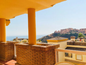 Fantástico apartamento situado en un complejo muy bien cuidado en la parte alta de Calahonda. ¡La propiedad cuenta con impresionantes vistas panorámicas de la costa y el mar Mediterráneo! Esta propiedad especial ofrece una cocina moderna y equipada con todos los electrodomésticos nuevos y una abertura para servir que da a un amplio y luminoso salón / comedor con chimenea. Desde el salón se accede a una gran terraza de orientada al oeste, desde donde se puede disfrutar de fantásticas vistas del mar y los alrededores. La propiedad tiene 2 dormitorios dobles con armarios empotrados y 2 baños (uno en suite). El dormitorio principal también tiene acceso directo a la terraza. La propiedad es en perfecto estado y listo para entrar a vivir. con suelos de mármol, doble acristalamiento, aire acondicionado frío / calor y chimenea. Dentro del complejo hay 2 grandes piscinas comunitarias con magníficas vistas y jardines bien cuidados. Hay aparcamiento comunitario en frente del edificio y también aparcamiento comunitario cerrado en el centro del complejo. Para los amantes del golf, el apartamento se encuentra a solo 1,5 km de La Siesta Golf y hay 2 bares y 2 restaurantes a poca distancia a pie (a 500 metros)