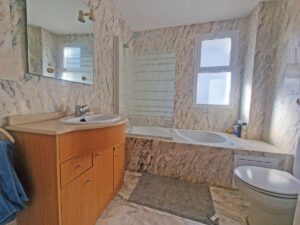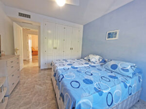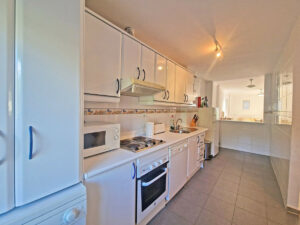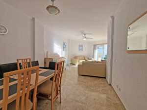 En el interior, el apartamento ofrece elegantes suelos de mármol crema en todas las estancias y una amplia cocina semiabierta completamente equipada. Dispone de dos dormitorios luminosos y confortables, ambos con armarios empotrados, y dos baños, uno de ellos en suite. El dormitorio principal y el salón tienen acceso directo a la terraza, creando una excelente conexión entre los espacios interiores y exteriores.