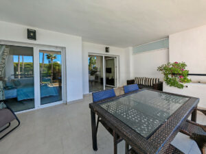 Apartamento en venta en , Mijas Costa con 2 dormitorios, 2 baños, 1 baño en suite y con orientación oeste, con piscina comunitaria, garaje privado (1 plazas) y jardín comunitario. Respecto a las dimensiones, la propiedad presenta 80 m² construidos y 20 m² de terraza. Tiene las siguientes características primera linea de playa, servicios cercanos, transporte cercano, aire acondicionado, completamente amueblado, cocina totalmente equipada, trastero, suelos de mármol, entrada de seguridad, cristal doble, videoportero, servicio de seguridad 24h, terraza privada, cocina equipada, salón, vistas al mar, persianas de seguridad, lavadero, internet – wi-fi, terraza cubierta, 24 horas de servicio, armarios empotrados, comunidad cerrada, ascensor, vistas al jardín, vistas a la piscina, lado playa, portero, cerca de playa / mar, cerca del golf, puertas de cristal, balcón, excelente estado, tiendas cerca, cerca de la ciudad, colegios cerca, cámaras de vigilancia y animales permitidos.