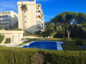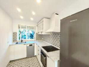 Mezcla de modernidad, luz y gran terraza. Caminando a la playa y el centro comercial. Chiringuitos y restaurantes, supermercados, todo caminando. Gran terraza, unos 30 metros cuadrados, vistas despejadas. Caminando a la playa y centro comercial. Cafetería, restaurantes, chiringuitos. También caminando a su Sport Gym favorito, unos 15 minutos. Apartamento de esquina, baño con ventana y cocina con ventana. Piscina y jardín comunitario. Parking cerrado, comunitario. Cocina recién reformada, estilo open plan. Electrodomésticos con factura. Se entrega con algún mobiliario, también nuevo. Salón y dormitorio principal con chimenea. Barbacoa de obra en la terraza.