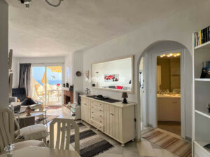 Muy luminoso gracias a su orientación sur, la propiedad ofrece cocina renovada, dos dormitorios (uno de ellos ampliado), baño reformado, salón con chimenea y terraza de buen tamaño con trastero, perfecta para disfrutar sus estupendas vistas abiertas al mar. Mobiliario incluido.