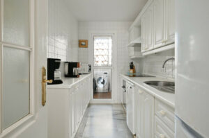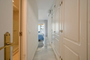 La vivienda cuenta con una superficie construida de 105 m², de los cuales 85 m² corresponden al interior y 20 m² a una amplia terraza privada con vistas panorámicas al mar, al jardín y a la piscina comunitaria. Dispone de dos dormitorios con armarios empotrados, dos baños (uno de ellos en suite y ambos con calefacción por suelo radiante), un luminoso salón, cocina totalmente equipada y amueblada, lavadero y cuarto de servicio. El apartamento se entrega completamente amueblado y en excelente estado de conservación, listo para entrar a vivir.