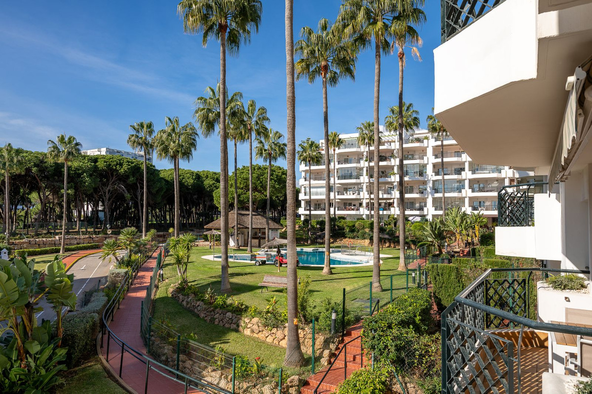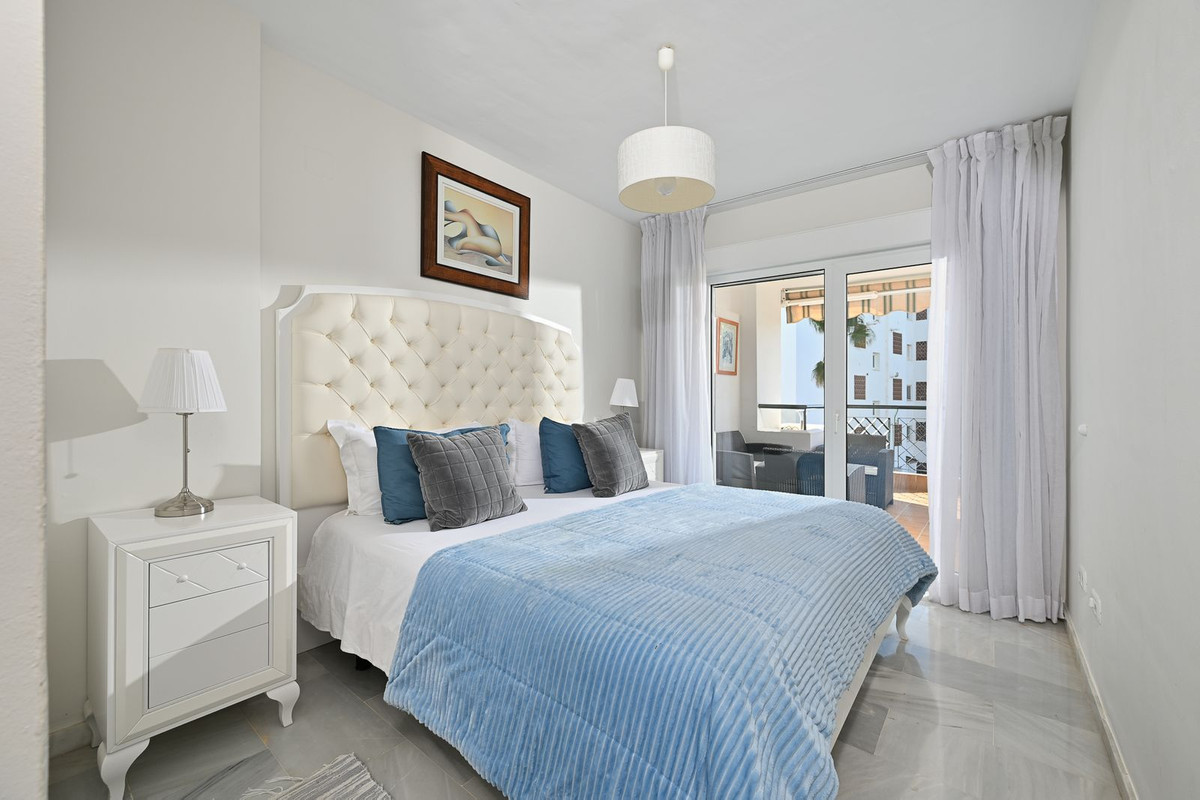 La vivienda cuenta con una superficie construida de 105 m², de los cuales 85 m² corresponden al interior y 20 m² a una amplia terraza privada con vistas panorámicas al mar, al jardín y a la piscina comunitaria. Dispone de dos dormitorios con armarios empotrados, dos baños (uno de ellos en suite y ambos con calefacción por suelo radiante), un luminoso salón, cocina totalmente equipada y amueblada, lavadero y cuarto de servicio. El apartamento se entrega completamente amueblado y en excelente estado de conservación, listo para entrar a vivir.
