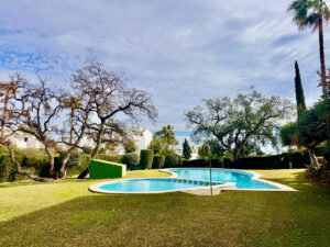 La propiedad cuenta con dos amplios dormitorios dobles, un baño completo y un aseo independiente que se puede convertir fácilmente en aseo de invitados. El luminoso salón da a una amplia terraza orientada al sureste con vistas panorámicas al mar y a la piscina. Un segundo balcón orientado al oeste ofrece el lugar perfecto para disfrutar del sol de la tarde.