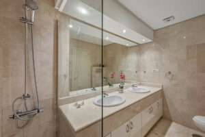 La vivienda cuenta con dos dormitorios y dos baños, ideal tanto como residencia habitual, vivienda vacacional o inversión a largo plazo. Dispone de dos amplias terrazas con un total de 58 m², que permiten disfrutar tanto del sol como de la sombra durante el día gracias a su orientación sur.