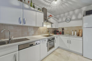 La cocina es independiente y espaciosa, con un lavadero adjunto que también tiene acceso directo a una de las terrazas. Esta terraza disfruta de sombra durante la mayor parte del día, siendo perfecta para comer al aire libre durante los meses más calurosos del verano.