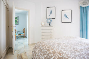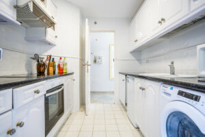 La propiedad ofrece dos dormitorios y dos baños. El dormitorio principal cuenta con baño en suite y acceso directo a la terraza, mientras que el segundo baño se encuentra convenientemente ubicado en el pasillo interior. Dispone de una cocina independiente totalmente equipada con lavadero separado, así como un trastero adicional.