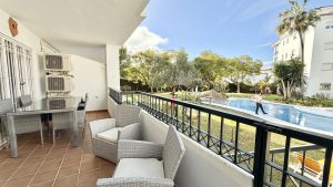 Este apartamento de 2 dormitorios y 2 baños está situado en una urbanización muy conocida en Calahonda, a poca distancia de la playa, bares, restaurantes, veterinario y todos los servicios.