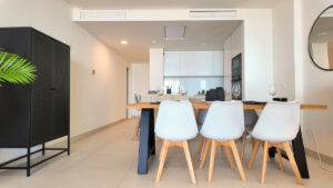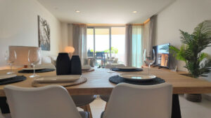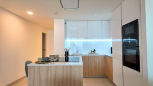 Este lujoso apartamento de dos dormitorios y dos baños y medio tiene una superficie de 100 m² y cumple con los más altos estándares, con cocinas y baños de primera calidad diseñados por Gunni & Trentino y Neff. Las comodidades modernas, como el control de la climatización y la domótica preinstalada, mejoran su experiencia de vida.
