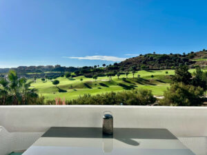 Muy bien situada, con vistas despejadas al campo de golf y la costa.