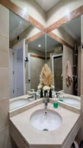 La propiedad es un bajo exterior con orientación Sur con vistas hacia los jardines. Cuenta con dos cómodas y muy bien iluminadas habitaciones con armarios empotrados, dos baños con excelentes acabados, confortable salón comedor que se abre hacia una acogedora terraza cubierta. La cocina por su parte – totalmente amoblada – la encontrarás en un espacio independiente. De igual manera, el piso incluye plaza de garaje y trastero.