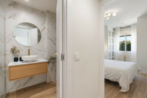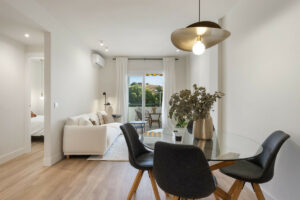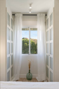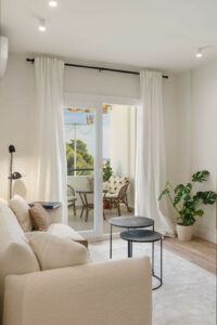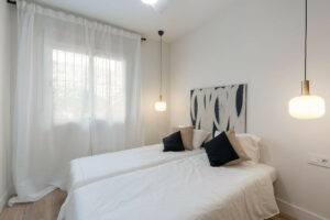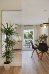 Al entrar, te recibe un luminoso salón de planta abierta donde el estilo y la funcionalidad se integran a la perfección. La cocina está equipada con elegante encimera de mármol natural Calacatta y acabados contemporáneos, complementando el estiloso baño y los materiales de alta calidad presentes en toda la vivienda. El aire acondicionado en el salón y el dormitorio principal garantiza confort durante todo el año, mientras que el ventilador de techo en el segundo dormitorio aporta una agradable ventilación natural.