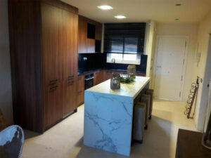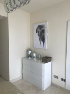 El apartamento dispone de dos amplios dormitorios, dos baños completos (uno con ducha y otro con bañera), un vestidor, una cocina abierta de diseño danés y vistas panorámicas desde prácticamente todas las estancias. Además, incluye un garaje y un trastero. La finalización de la construcción está prevista para mediados de agosto.