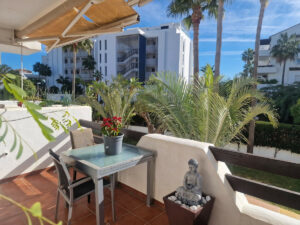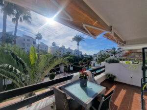 A solo unos pasos de la playa ofrecemos a la venta este luminoso apartamento de 2 dormitorios y 2 baños situado en 1ª planta con amplia terraza,