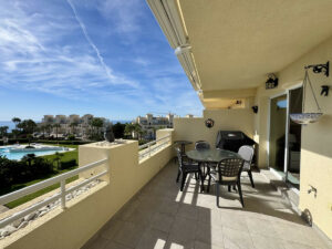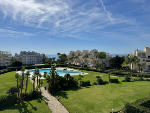 Bienvenido a este luminoso y acogedor apartamento de 2 dormitorios, 2 baños y una amplia terraza con preciosas vistas a la exuberante piscina y al mar.