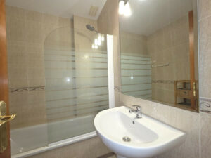 Al entrar, encontramos un recibidor que da paso a un pasillo amplio con suelos de mármol claro, carpintería interior en madera maciza y paredes blancas que potencian aún más la luminosidad que entra desde el salón. Desde el primer momento se aprecia sensación de orden, amplitud y calidez.