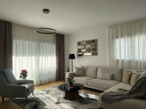 La espaciosa cocina está totalmente equipada con electrodomésticos Bosch, satisfaciendo tanto a los entusiastas de la cocina como a aquellos que aprecian las comodidades modernas. El confort se mejora con calefacción por suelo radiante en todo el apartamento y un sistema de aerotermia para una eficiencia energética óptima.