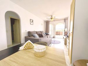 La vivienda cuenta con dos confortables dormitorios equipados con armarios empotrados, un baño completo moderno con plato ducha y una cocina independiente que ofrece la posibilidad de abrirse al salón creando así un espacio más amplio y funcional.