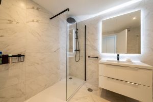 Una de las características más destacadas es la enorme terraza de 50 m² orientada al sur. Disfruta de sol durante todo el día y ofrece vistas al mar, además de agradables vistas a los jardines y la piscina. Es una zona ideal para relajarse, comer al aire libre o recibir invitados, y realza la sensación de vida interior-exterior que hace que las propiedades en esta zona sean tan codiciadas.