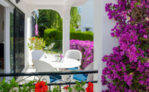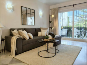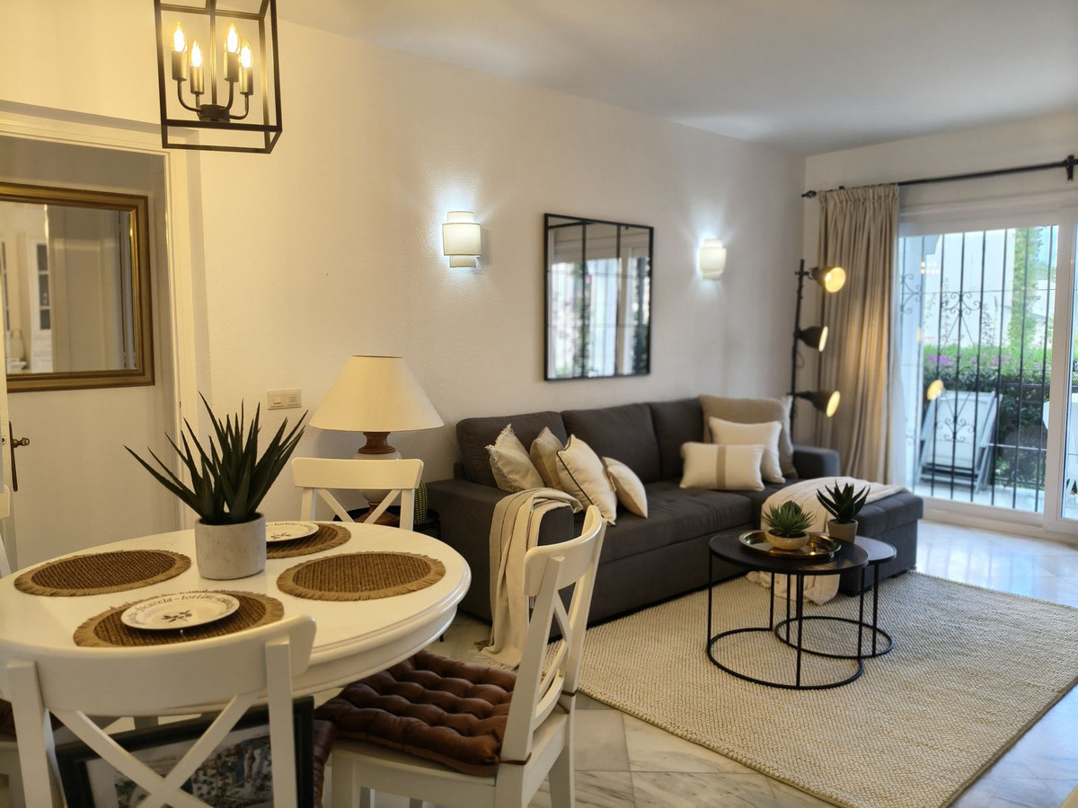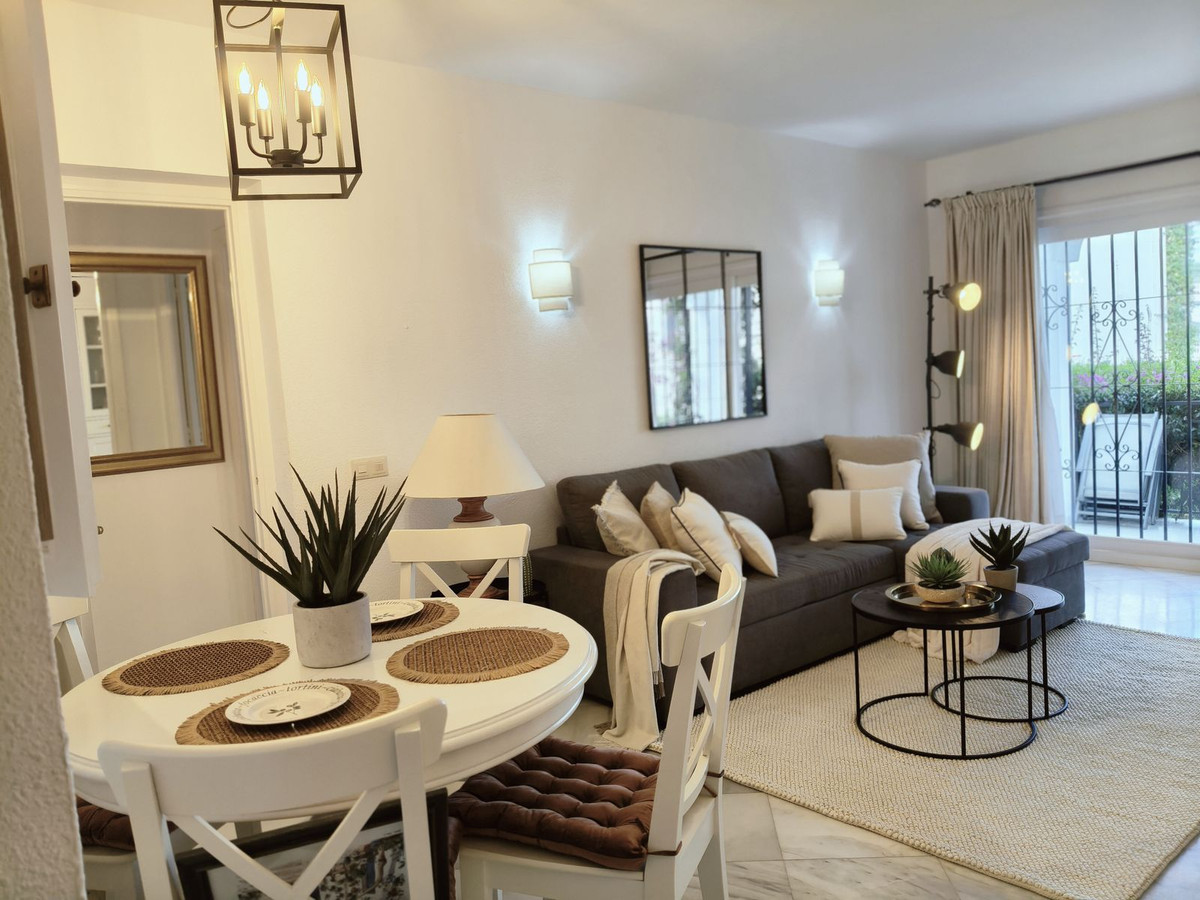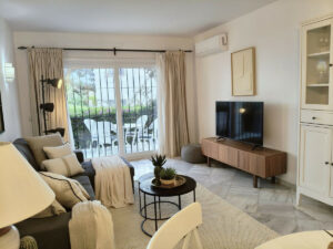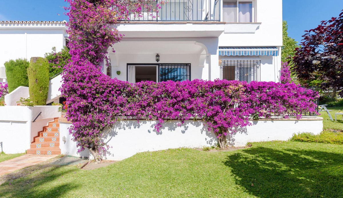 Excelente oportunidad de adquirir un apartamento de una sola planta con jardín y un amplio trastero/patio andaluz en El Paraíso Cortes del Golf, Benahavís.