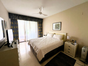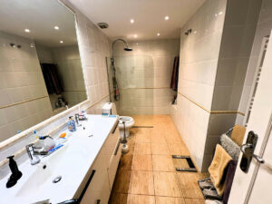 El segundo dormitorio es amplio y, además de amplio armario, cuenta con un práctico armario para guardar maletas, palos de golf, cojines, etc. El baño familiar se encuentra justo al lado de este dormitorio.