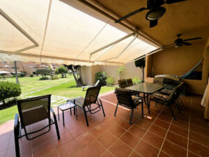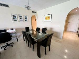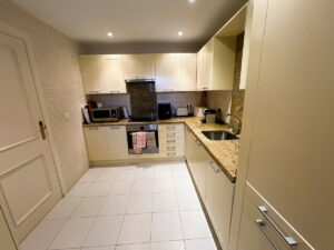 Al entrar en el apartamento, notará sus generosas dimensiones, inusuales en los apartamentos de dos dormitorios de la zona. El salón-comedor ofrece espacios para ver la televisión, socializar con amigos y trabajar. Cuenta con una chimenea para las noches de invierno y aire acondicionado frío/calor. Esta estancia da a una gran terraza privada y a los hermosos jardines de esta tercera fase del complejo. A pocos metros se encuentra una de las tres piscinas comunitarias. La cocina también ha sido modernizada y cuenta con una zona de lavandería adicional y ventilada.