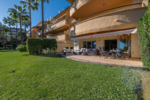 Impecable apartamento con jardín en Elviria, situado en una conocida urbanización galardonada.
