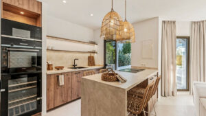 La propiedad combina a la perfección diseño, confort y funcionalidad, con espacios abiertos, materiales actuales y una decoración cuidada al detalle. Desde el salón se accede directamente a una agradable zona exterior ideal para comer al aire libre, relajarse o disfrutar en familia, rodeado de cuidados jardines comunitarios.