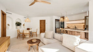 Ubicado en el exclusivo enclave residencial en primera línea de la playa de Golden Beach, en Elviria, este apartamento en planta baja, totalmente reformado, ofrece el auténtico estilo de vida del Mediterráneo moderno. Orientado al oeste, disfruta de agradables atardeceres, lo que crea un ambiente cálido y acogedor tanto en el interior como en la terraza.