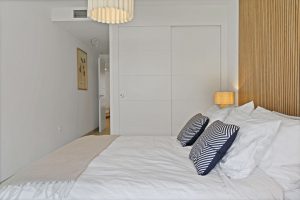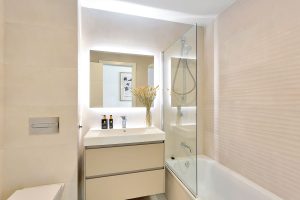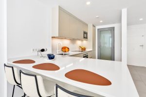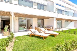 El apartamento dispone de 2 dormitorios y 2 baños, con una luminosa cocina abierta al salón y al comedor que conecta directamente con una terraza privada y jardín. Tanto el salón como el dormitorio principal tienen acceso directo al espacio exterior, creando una agradable sensación de vida interior–exterior. Además, hay mucho espacio de almacenamiento gracias a los armarios empotrados, y el baño principal es en suite e incluye bañera.