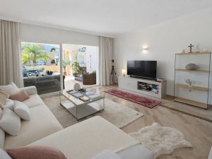 Se distribuye en hall de entrada, amplio salón-comedor con acceso directo a la terraza, cocina independiente, lavadero, dos dormitorios, dos baños completos y un aseo, ofreciendo una distribución cómoda y funcional.Ubicada en planta baja dentro de un exclusivo conjunto residencial, con acceso desde zonas comunes ajardinadas que aportan privacidad y tranquilidad.La propiedad forma parte de un cuidado complejo residencial en Elviria (Las Chapas), una zona consolidada con supermercados, restaurantes, campos de golf, colegios internacionales y todos los servicios, además de estar a pocos minutos de la playa y a corta distancia del centro de Marbella.Una vivienda perfecta tanto como residencia habitual, segunda vivienda o inversión en una de las zonas con mayor demanda de la Costa del Sol.