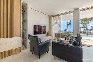 Espectaculares vistas al mar, a cinco minutos en coche de Estepona y a 15 min de Puerto Banús. Urbanización moderna en primera línea de playa a pie del paseo marítimo, que consta de 68 apartamentos. Posee jardines muy bien cuidados, piscina infinity, sala de conferencias y reuniones, gimnasio y zona de spa con piscina cubierta climatizada, jacuzzi, hamman y sauna. Este espectacular y luminoso apartamento donde disfrutar de las mejores vistas, cuenta con dos habitaciones, 2 baños con acabados de la firma Dombracht y 2 terrazas, la principal con vistas al jardín y al mar, además de un espacioso salón-cocina en planta abierta con electrodomésticos de la prestigiosa firma Gaggenau, garaje, trastero y seguridad 24h. Este apartamento de lujo es perfecto dado su ubicación privilegiada y los servicios de alta gama que ofrece para convertirse en su nuevo hogar. Ven a verlo.