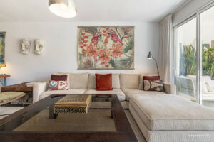 La espaciosa distribución incluye dos amplios dormitorios con armarios empotrados, y dos baños, la vivienda fue renovada y se distribuyó salón con cocina en planta abierta para mayor sensación de amplitud. Su gran terraza ofrece vistas increíbles pero aporta gran privacidad gracias a la vegetación exuberante del lugar y gracias a su orientación sur oeste se disfruta de luz todo el dia y magnifico sol de tarde.