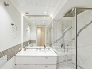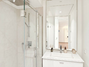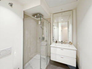 La terraza acristalada de más de 30 m² no es solo una prolongación del salón, es un rincón para respirar, contemplar, desconectar del mundo. Y cuando cae la noche, los dos dormitorios se convierten en refugios de calma. El principal, íntimo y acogedor, cuenta con su propia caja fuerte integrada: un detalle pensado para que vivas con total tranquilidad. El diseño se une con la seguridad, y la estética con la funcionalidad. Los dos baños, revestidos con materiales nobles, ofrecen duchas efecto lluvia que transforman cualquier rutina en un momento de spa.