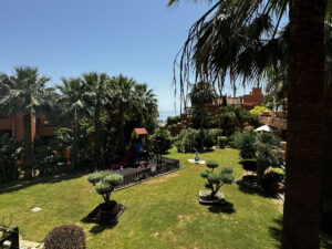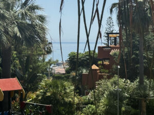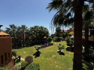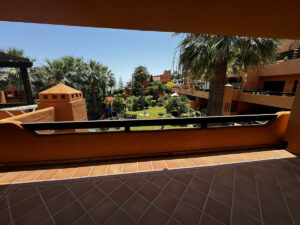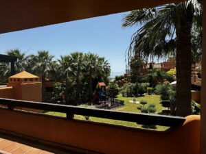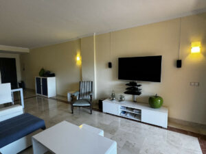 La distribución es amplia y funcional, con un salón generoso, dos dormitorios cómodos y dos baños, uno de ellos en suite. Los grandes ventanales permiten la entrada de mucha luz natural y crean una transición fluida entre el interior y el exterior. Desde la terraza privada se disfrutan bonitas vistas al mar.