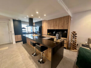 La cocina consta de todos los electrodomésticos de primeras marcas, y ha sido construida con isla central y gran capacidad de almacenaje.
