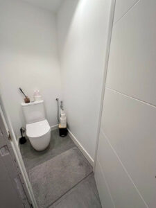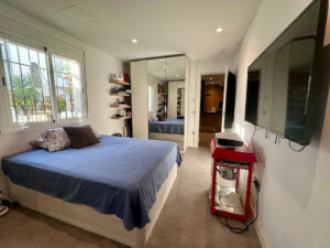 A la derecha del hall de entrada, tenemos el dormitorio de invitados, luminoso y amplio con baño en suite, igualmente reformado.