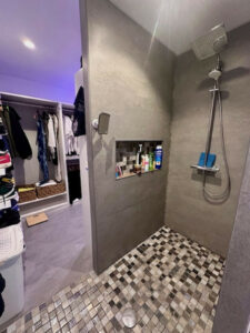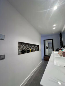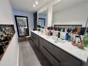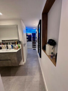 El dormitorio principal, super moderno, ha sido dividido en 2 partes; zona baño, con ducha, y zona del lavabos independiente (el & ella).