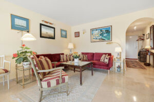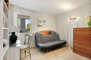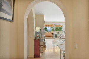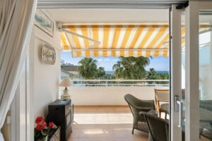 Apartamento en la última planta del popular complejo Nordic Royal Club. Ubicado en la quinta planta, ofrece hermosas vistas al cuidado jardín y al mar. Dispone de dos amplios dormitorios y dos baños. El salón y el dormitorio principal dan a la terraza acristalada. La urbanización cuenta con recepción 24 horas, lo que garantiza seguridad y tranquilidad. El apartamento incluye aparcamiento subterráneo y trastero. Desde el aparcamiento se accede a la planta mediante el ascensor. El agua caliente y fría está incluida en la cuota de comunidad.