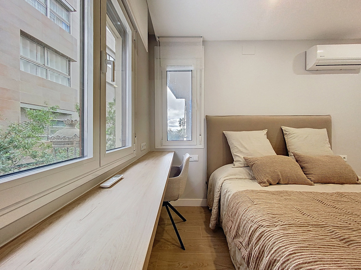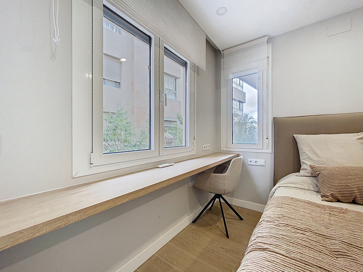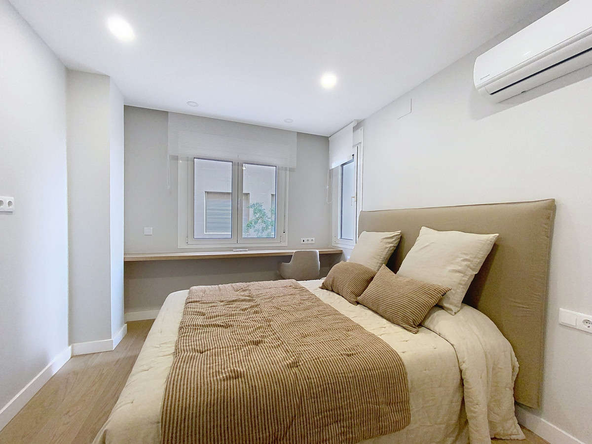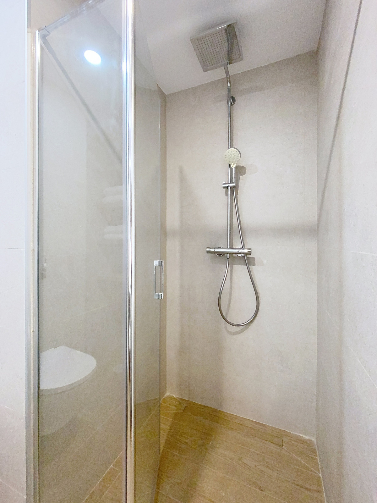 El apartamento cuenta con dos dormitorios, con fácil posibilidad de crear un tercer dormitorio, con armarios empotrados y acabados modernos. El dormitorio principal dispone de un amplio baño privado con ducha de gran tamaño, mientras que el segundo baño también está completamente equipado y mantiene la misma línea de diseño actual. Los acabados incluyen suelos de porcelana en las zonas húmedas y doble acristalamiento en todas las ventanas, garantizando confort y eficiencia.